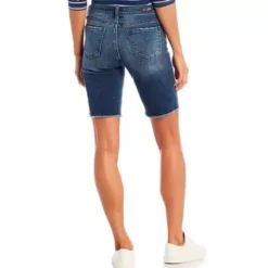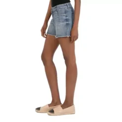 A vintage look without compromising comfort. This high-rise denim short with a frayed hem is perfect for those nothing-to-wear days. Subtle fraying completes the look.